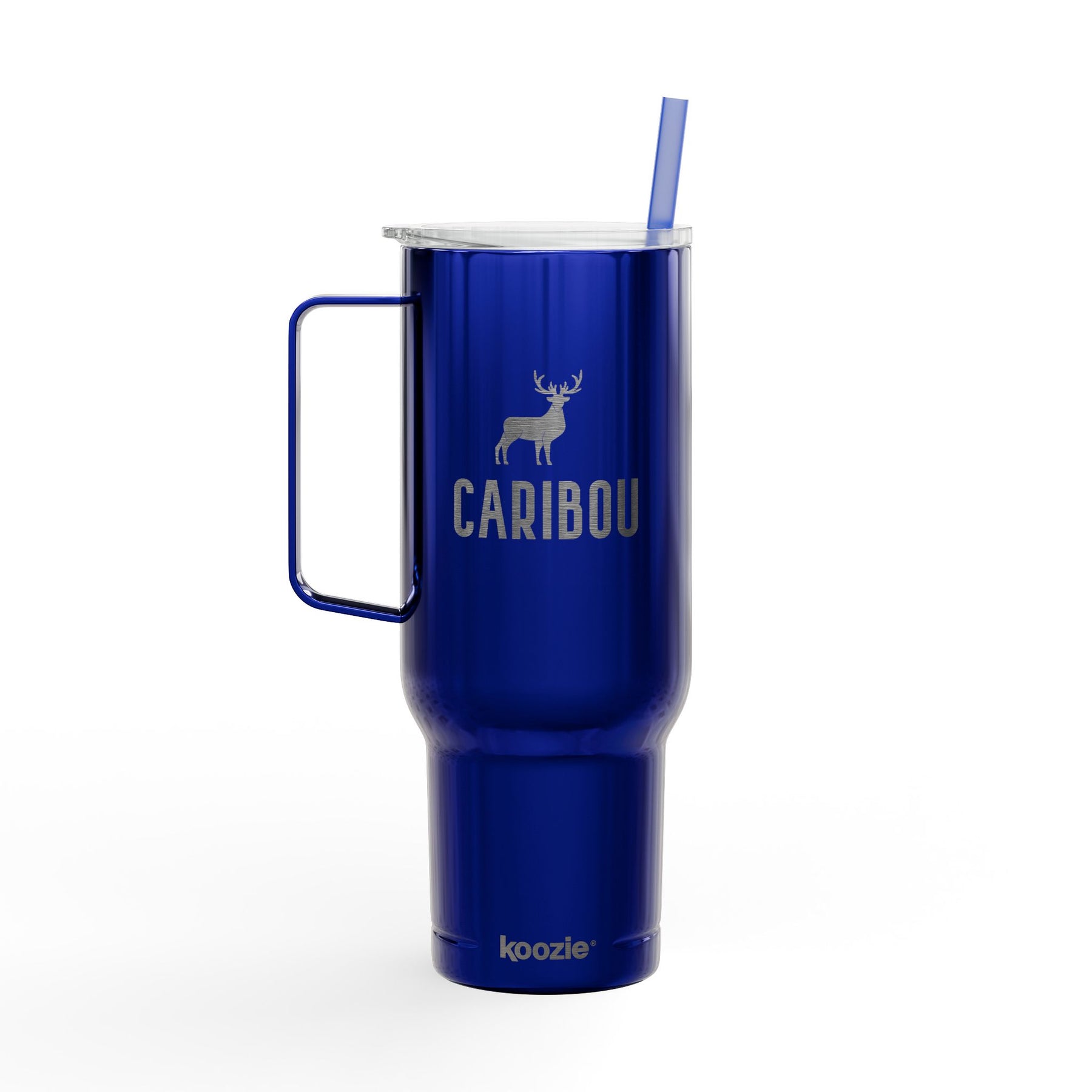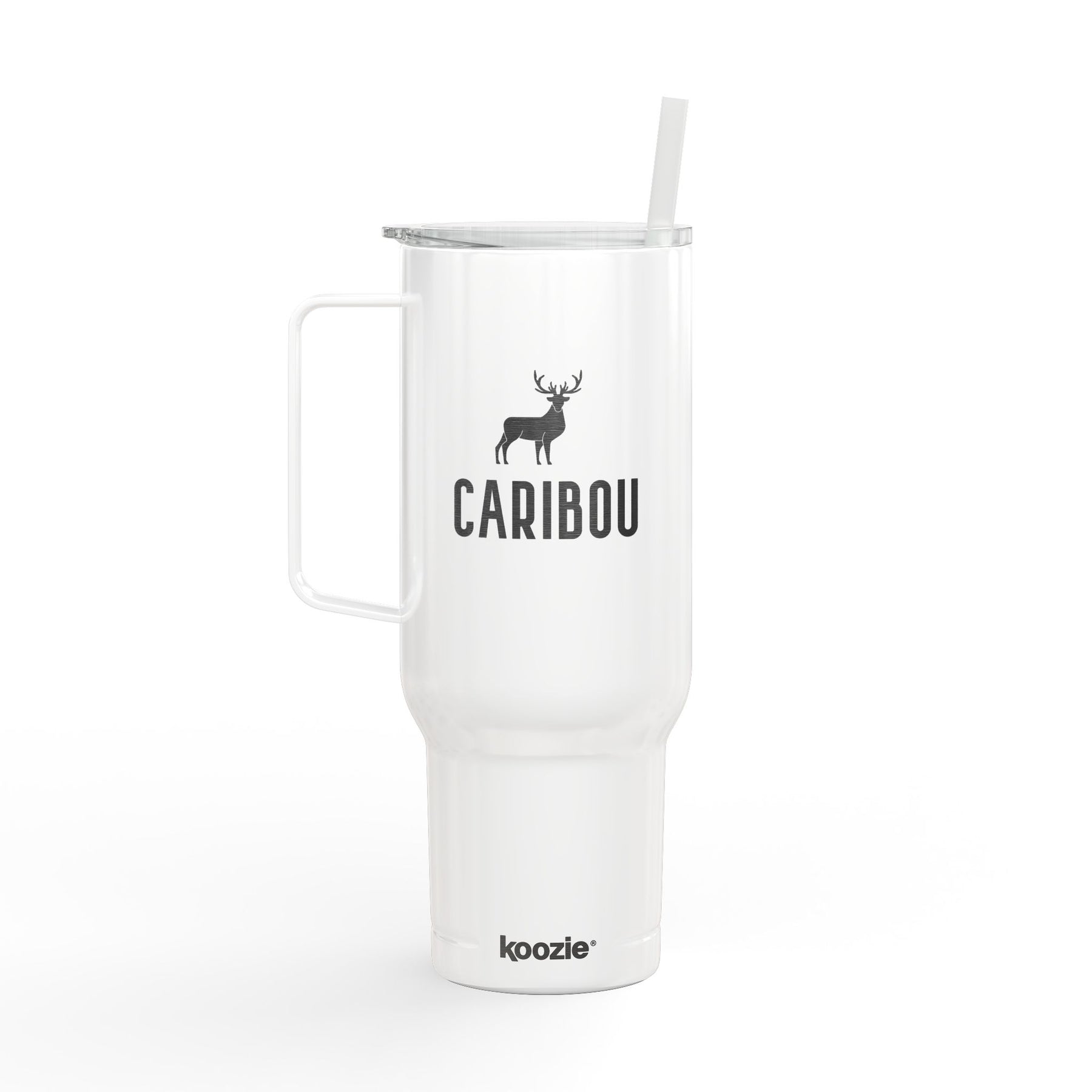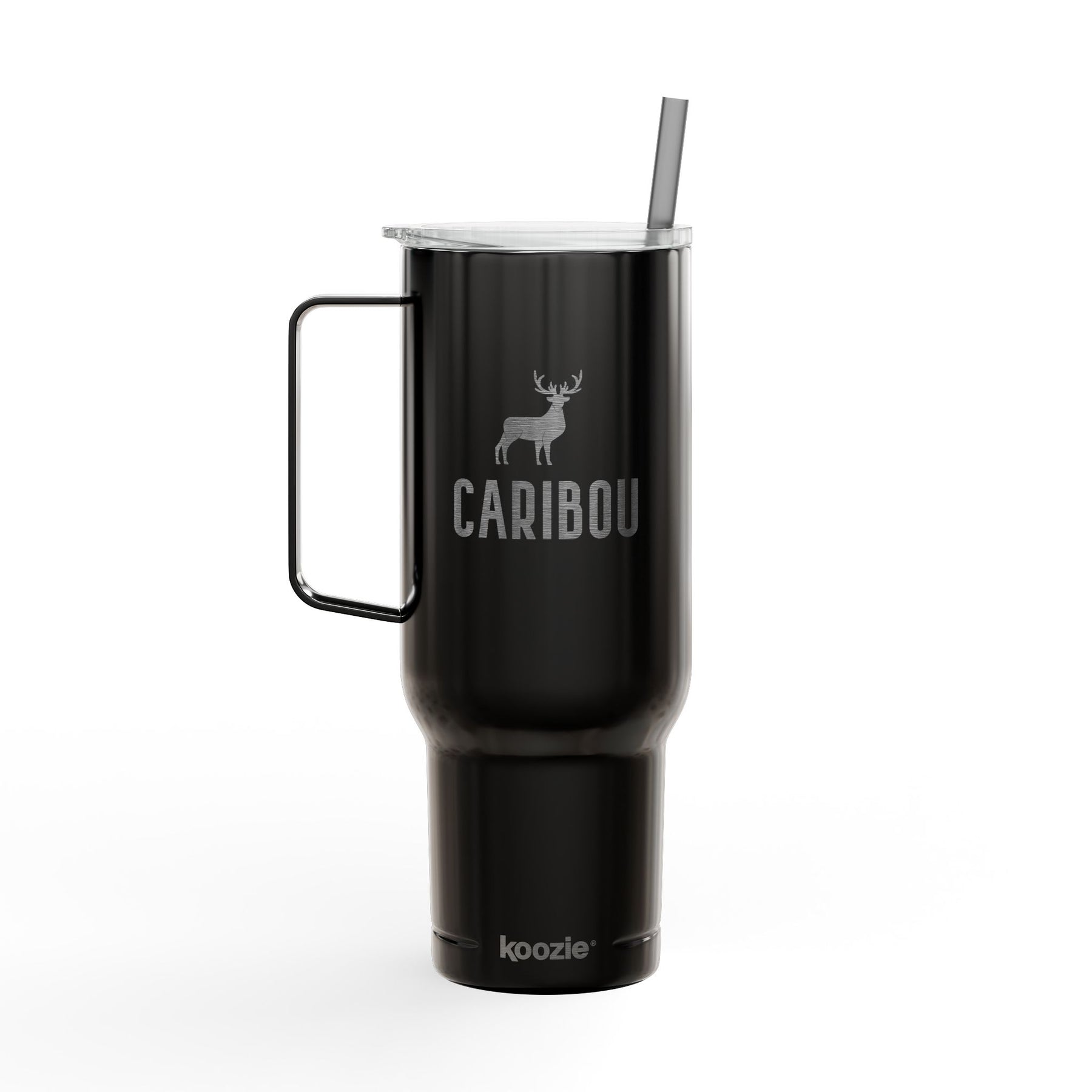 This 40oz insulated tumbler brings rugged outdoor spirit to everyday hydration. Engraved with a bold caribou silhouette and clean typography, it feels like a quiet morning on the trail — crisp air, warm drink in hand. The tall, tapered shape fits most cup holders; the large comfort handle and press-fit slider lid make refills and carrying simple when moving between campsite, truck, and cabin. Double-wall vacuum insulation holds hot or cold temperatures for hours, and the matching straw and glossy finish give it a polished, practical look. Built from mostly recycled stainless steel and plastic, it pairs durability with a smaller footprint. Hand wash only to keep the engraving sharp and the finish bright.